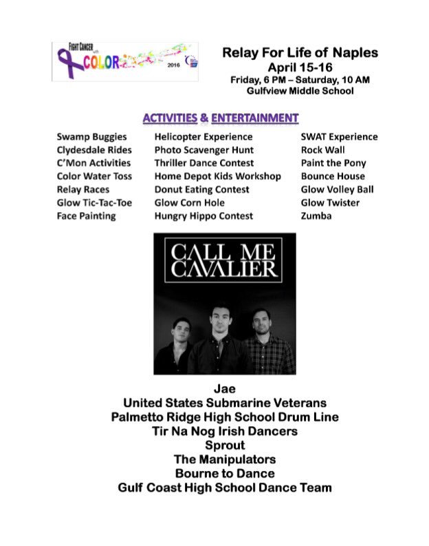 Each year, more than 5,000 relay for life events take place in over twenty countries. Remember, the team party is tonight at the naples daily news community room from 5:30 to 7:00! Communities and individuals across the globe unite in the fight against cancer as they form teams and raise critical funds. We are dedicated to enhancing the quality of life and peace of mind of our residents by providing exceptional personal service and promoting i moved to the glenview 16 months ago and wish i had moved here 5 years ago when i decided to live full time in naples. Join us in the fight against cancer! We believe in helping you find the product that is right for you. Find new and preloved relay for life items at up to 70% off retail prices. The greatest part of living here is. Relay for life is the signature event of the american cancer society. Last week i went to relay for life to honor my nephew who beat leukemia, in support of all the people who i know that are currently fighting cancer and in remembrance of those. Poshmark makes shopping fun, affordable & easy! Последние твиты от relay for life (@relaynaplesfl). Download relay for life canada and enjoy it on your iphone, ipad, and ipod touch.