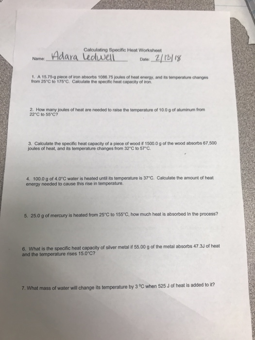 Worksheet calculations involving specific heat. Calculating specific heat worksheet answers akademiexcel. Specific heat capacity is the amount of _ required to raise the temperature of 1 gram of substance 1 degree celsius. Students see firsthand that no matter what there in (solid, liquid, or gas) molecules are constantly moving. Q = amount of heat (j) m = mass (grams) c = specific heat (j/g°c) δt = change in temperature (°c) 2.